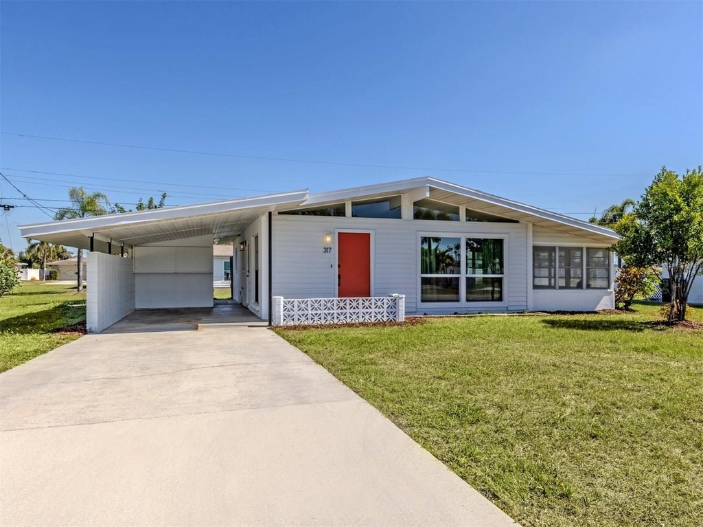 One or more photo(s) has been virtually staged. Welcome to 317 Hillview Rd. in desirable Venice Gardens, located in south Sarasota County. This charming two-bedroom, two-bath home offers 1,135 square feet of living space under air and is perfectly situated for enjoying the best of the Florida lifestyle. Upgrades include: NEWER electrical panel, FRESH interior & exterior paint, NEW doors throughout, all new outlets with GFCI protection and more. Inside, you'll find beautiful and professionally refinished terrazzo floors that perfectly complement the home's mid-century modern character, adding timeless style and durability. Just under four miles from historic downtown Venice and the world-famous Gulf beaches, you'll have quick access to the beautiful shores, boutique shopping, dining, and entertainment. Even closer to home, you're less than half a mile from convenient shopping centers and a variety of popular restaurants. This property is located outside of a flood zone, providing added peace of mind. With no HOA fees, it offers flexibility and affordability whether you're searching for a full-time residence, seasonal getaway, or investment property. If you're looking for a place to call your own in a prime Venice location, this two-bedroom, two-bath home is a fantastic opportunity. Be sure to tell all your family and friends, "I live where you vacation!"